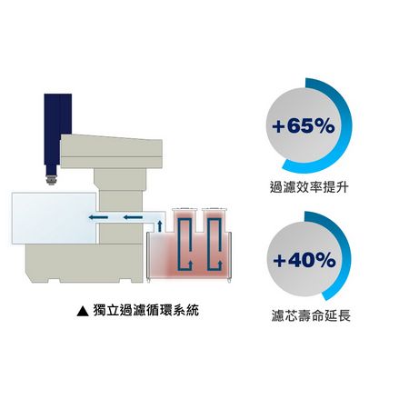 針對粗加工過程中產生的大量碳渣,傳統過濾方式常導致進油堵塞,影響加工效率與品質。該機型配備創新的自循環過濾系統,能定時自動進行過濾與清洗,顯著提高過濾效率。同時,過濾系統的高效運作有效降低濾芯更換頻率,確保加工油的潔淨穩定,並提升進油速度,為整體加工流程帶來更高的可靠性。